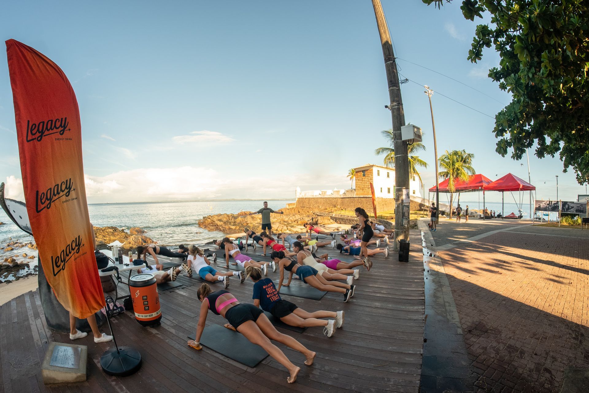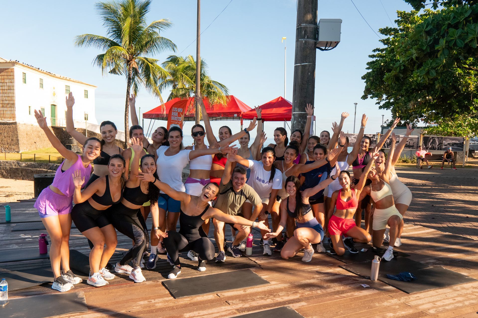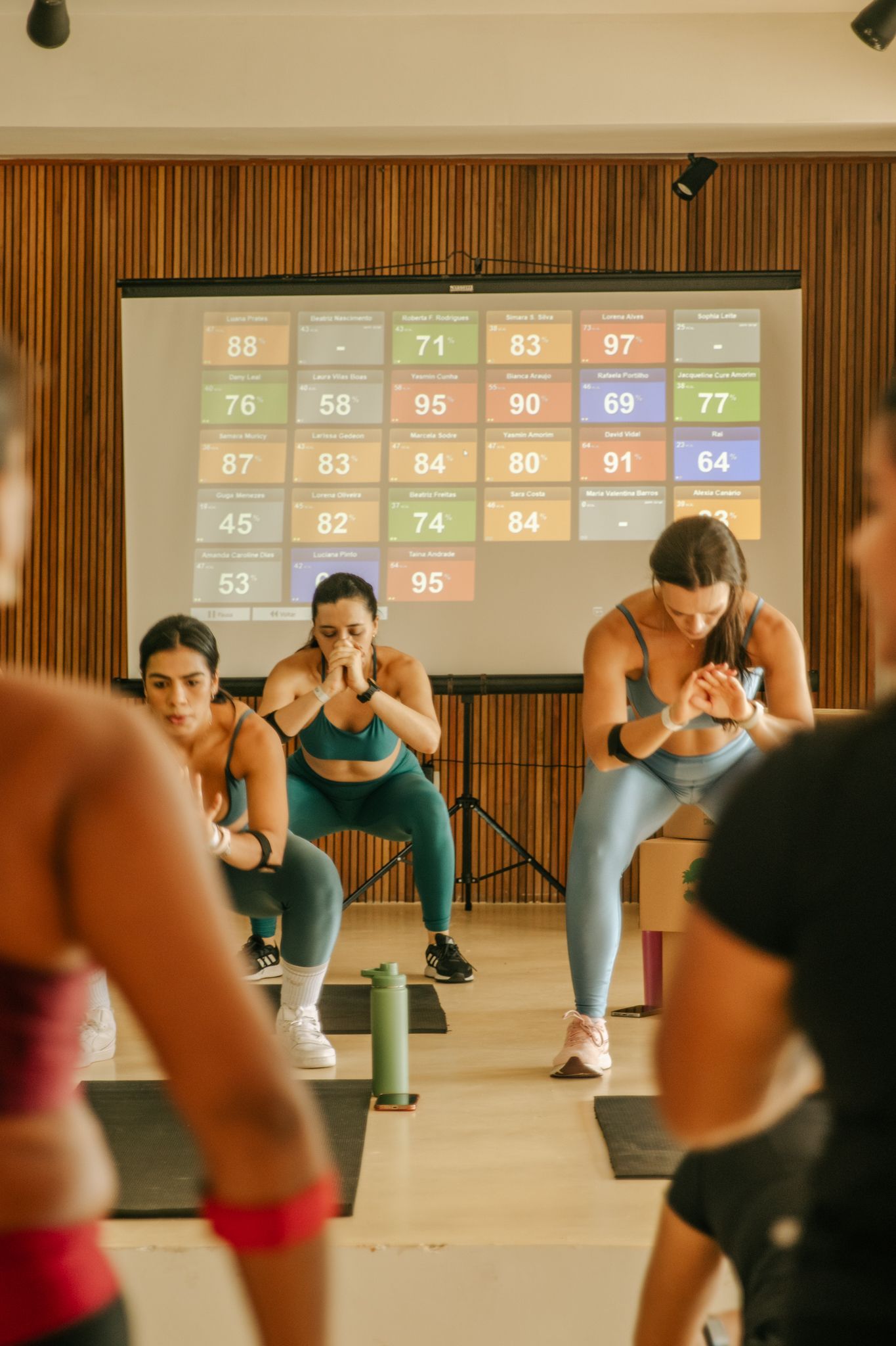 BotãoAulão funcional com monitoramento da frequência cardíaca e gasto calórico em tempo real no Blue Praia Bar